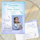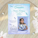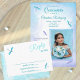 This light blue and turquoise Quinceañera invitation has a glittery horse carriage and fluttering dragonflies. Browse matching rsvp cards, envelopes, labels, and stickers in this collection. Easily add your photo and transfer this whimsical blue dragonfly and horse carriage design to other stationery. This invitation template is versatile for dusty blue and light cyan color palettes. Beautiful for horse buggy and whimsical dragonfly party themes.