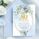 Invitación Light Blue Peony Flowers Gold Frame 80th Birthday