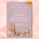 Persoanice esta invitación y hospede un encantador Fiesta de té de Baby Shower con este diseño caprichoso que es tan dulce como la ocasión en sí. Una tetera florida y una tetera adornadas con un original puesto de pasteles adornados con deliciosos quequitos coronados con una suave cereza rosa y amarilla y cerezas rojas brillantes. El diseño se ha diseñado sobre un fondo lila suave, con tipografía blanca elegante y fuentes de escritura elegantes. Perfecto para una ducha de bebé fiesta de té o incluso una celebración caprichosa para la madre, este diseño aporta un toque de encanto vintage y elegancia juguetona a su día especial.
