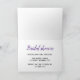 Diseño floral lila rosa, sencillo y elegante, con un fondo azul violeta. Información de ducha de novia dentro que se puede personalizar. Si tienes alguna solicitud especial o necesitas ayuda, por favor avísenme. Elementos de coordinación disponibles en mi tienda.