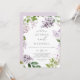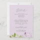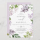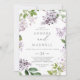 Este lila rústico, todo en una sola invitación matrimonial, es perfecto para un boda de primavera o verano. El romántico y elegante diseño floral presenta flores silvestres de lila morada con acuarelas y un ambiente rústico y acogedor. Guarde el papel incluyendo los detalles en la parte posterior de la invitación a la boda en lugar de en una tarjeta separada. Incluya también la información de RSVP si su invitado responderá electrónicamente (opcional).