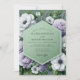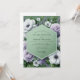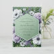 Capture a moment of romantic elegance with this lush botanical design. A beautiful arrangement of painterly lilac peonies, delicate white anemones, and sprigs of lavender populates the composition. Set against a soft sage green backdrop, this artwork creates a serene and enchanting atmosphere for your special day.
