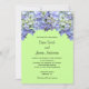 Esta invitación a la boda incluye una foto de hortensias púrpura en un fondo verde lima. El color de fondo se puede cambiar eligiendo el botón personalizar.