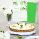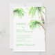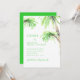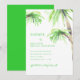 Invitación a la ducha de novia con palmeras. Fondo blanco y verde limón.