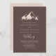 Esta clara invitación a la boda en casa de campo y montaña es perfecta para un boda rústico. El diseño presenta una idílica montaña color beige acuático. Guarde el papel incluyendo más detalles en la parte posterior de la invitación en lugar de en una tarjeta separada.