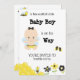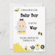 El fondo de este BEBÉ moderno de la diversión caprichosa linda dulce adorable de la abeja de la miel MANOSEA AL BEBÉ de la ABEJA que la tarjeta de la INVITACIÓN de BABY SHOWER es BLANCO quebradizo.