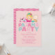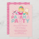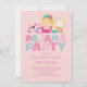 La invitación linda del fiesta del sleepover que ofrecía a un chica rubio en una almohada con un cuenco de palomitas, de pizza y de artículos del maquillaje fijó en un fondo rosa claro con clase. Nuestro fiesta elegante, moderno y de la diversión de pijama invita tiene tipografía del galón el dejar en rosa, azules turquesas y rosa claro. Mueva de un tirón a nuestra fiesta de pijamas invitan encima para ver una parte posterior de coordinación de la raya del galón para un tacto especial adicional. Perfeccione para una fiesta de cumpleaños del tween o la fiesta de cumpleaños adolescente.