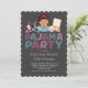 La concha de peregrino linda cortó la invitación del fiesta con tintas del sleepover que ofrecía a un chica afroamericano en una almohada con un cuenco de palomitas, de pizza y de artículos del maquillaje fijados en un fondo negro con clase. Nuestro fiesta elegante, moderno y de la diversión de pijama invita tiene tipografía del galón el dejar en rosa, azules turquesas y rosa claro. Mueva de un tirón a nuestra fiesta de pijamas invitan encima para ver una parte posterior de coordinación de la raya del galón para un tacto especial adicional. Perfeccione para una fiesta de cumpleaños del tween o la fiesta de cumpleaños adolescente.