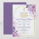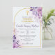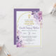 Haz que la Primera Comunión de tu hijo sea especial con esta linda y elegante invitación. Adornada con flores moradas y una cruz dorada, captura la esencia de una ceremonia religiosa católica.