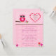 Invitación linda del cumpleaños del búho. ¡Bonito en rosa!