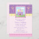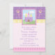 La invitación del cumpleaños del fiesta de la princesa de este chica tiene una imagen de un castillo púrpura lindo con dos varas en cada lado. Hay una banda horizontal de coronas detrás de ella con un diseño púrpura del lunar allí también. La mitad inferior de la invitación tiene un lugar para que usted modifique su información del fiesta para requisitos particulares. Diseño de Sanqunetti del © de los derechos reservados