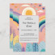 Invitación Lindo arcoíris boho pastel y sol sobre el bosque