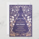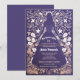 Esta exquisita invitación de quinceañera presenta una impresionante silueta de una joven adornada con un hermoso vestido, capturando la esencia de la celebración de la mayoría de edad. La imagen cobra vida contra un fondo de lavanda, añadiendo un aire de elegancia y sofisticación. Entrelazados con la silueta hay intrincados patrones florales representados en un llamativo tono dorado, lo que da al diseño un toque regio. La combinación de los tonos dorados y púrpuras crea una estética que es a la vez llamativa y agradable a la vista. Cada detalle del diseño embellece el escenario para la memorable celebración de quinceañera que se avecina.