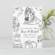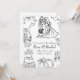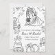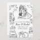 This charming hand-drawn wedding invitation features whimsical illustrations perfect for a fun and modern couple. The design includes a just-married car, romantic bride and groom, wedding cake, and doves.