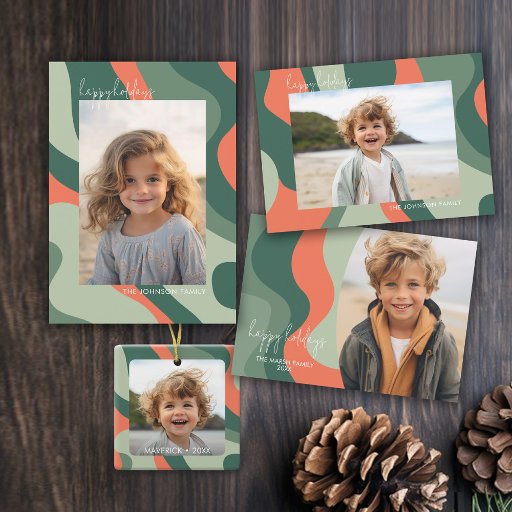 Una línea de arte orgánico abstracta con colores verdes y corales. El diseño moderno resalta la invitación a la fiesta con colores no tradicionales para la temporada de Navidades. La parte frontal también incluye una fuente caligráfica para el saludo y un sencillo patrón de arte abstracto en la parte posterior. Si necesita mover algo, haga clic en el botón personalizar para realizar cambios.