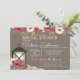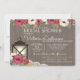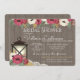 Flores de borgoña, marrón y oro y ducha de novia con linterna invitación con madera de grano de campo y encaje para una elegante ducha de novia de estilo rústico y señorial.