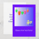 Una bella invitación de un azul sombreado con cinco farolillos colgantes chinos de cinco colores en la parte superior, y en la esquina, la caligrafía china para la palabra Harmony. Este diseño hace una extraordinaria invitación para Año Nuevo, invitación de fiesta de graduación, ¡o casi cualquier cosa! Añade tu propio texto hacia atrás y hacia delante, en cualquier tipo de letra. Juega con colores en la parte trasera también. Hemos colocado este sobre morado, pero jueguen y vean lo que se les ocurre.