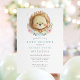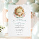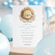 Celebra la llegada de un bebé con esta dulce y encantadora invitación a la ducha de bebé con un león acuarela rodeado de delicados florales azules y rosas. Este diseño aporta un toque suave y caprichoso, perfecto para una reunión de inspiración natural o animal.