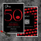 Moderna y moda, esta invitación de cumpleaños declara, "tiene 50 años" y combina el blanco y negro clásico con acentos de rojo brillante, con un lúgubre par de labios. Su diseño mínimo es un diseño simple y divertido para celebrar el cumpleaños del hito. La parte posterior contiene un área para un código QR para la respuesta RSVP. Creado por Simply Farmhouse Press.