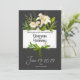 Lirios blancos sobre fondo oscuro. Invitación de boda perfecta. Personaliza todo el texto para hacerlo tuyo.