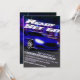 Arranca tus motores y corre hacia la meta para celebrar el cumpleaños de tu hijo. Esta invitación única fue dibujada digitalmente para ilustrar un auto deportivo muy rápido en un concurso de carreras nocturnas sin que nadie pueda alcanzarlo