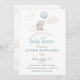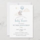 This adorable baby shower invitation features a hand-painted elephant and balloon nestled within the clouds. The calligraphy and serif fonts complement each other and add to the overall design.