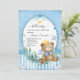 Invitación Little Bear Prince Blue flower Baby Shower