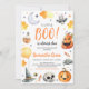 ¡Celebremos Halloween con nuestra invitación de Baby Shower de Little Boo Scary Halloween! Con un cráneo espeluznante, calabaza naranja de Halloween y murciélago juguetón, este diseño captura a la perfección el espeluznante encanto de la temporada. El gorra de brujas, el globo naranja y la luna contribuyen a la vibración festiva, mientras que las nubes naranjas crean un entorno asombrosamente hermoso. BBS777