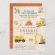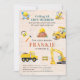 Calling all crew members to celebrate your little builder's big day! This construction-themed birthday invitation features a vibrant yellow color palette and playful illustrations of cement mixers, excavators, dump trucks, and more. The brick wall background adds a touch of rugged charm, perfect for a construction-loving child. It's ideal for any boy or girl turning two or any age in between. Let's build some birthday memories together with this fun and exciting design that will have all your guests revved up for the party fun. Make their birthday a construction zone of fun with this unique invitation that sets the tone for an unforgettable celebration filled with adventure and excitement. This invitation is sure to make your child's birthday party a construction success!