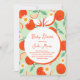 Prepárate para celebrar la llegada de tu pequeña con una encantadora invitación a la ducha de bebé con un diseño de naranja dulce. Este encantador diseño marca la pauta para una alegre celebración llena de amor y anticipación. Personalizar los detalles para hacerlo único tuyo y compartir la emoción de dar la bienvenida a tu grupo de alegría en el mundo.