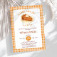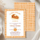 Celebra la llegada más dulce con esta acogedora invitación a la ducha de bebé. Con un ilustracion acuático de una deliciosa rebanada de tarta de calabaza coronada con crema batida, este diseño es perfecto para una ducha con tema de otoño. Los cálidos tonos naranjas y la divertida frase "Un pequeño pastel está en camino" lo convierten en una opción adorable para las reuniones de otoño. Personalice con el nombre de la futura madre, los detalles del evento y la información de RSVP para crear una invitación única que sus invitados amarán. Ideal para las duchas de bebé neutrales en género, las celebraciones de otoño y los fiestas de la temporada de Acción de Gracias.