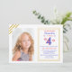 Pequeño petardo 4 años de invitación con acentos dorados. El fondo es blanco, pero se puede personalizar según el color que elija. Crédito de la foto de plantilla a través de Pixabay bajo licencia CC0 y debe ser reemplazado por su propia foto
