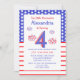 Pequeño petardo patriótico en la cuarta invitación de cumpleaños. El fondo es blanco, pero se puede personalizar según el color que elija.