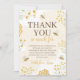 Send a sweet note of thanks with this matching bee-themed card. Featuring signature watercolor bees, honeycombs, and delicate white flowers. A beautiful way to express gratitude after your "First Bee-day" celebration. Elegant yellow and gold stationery.