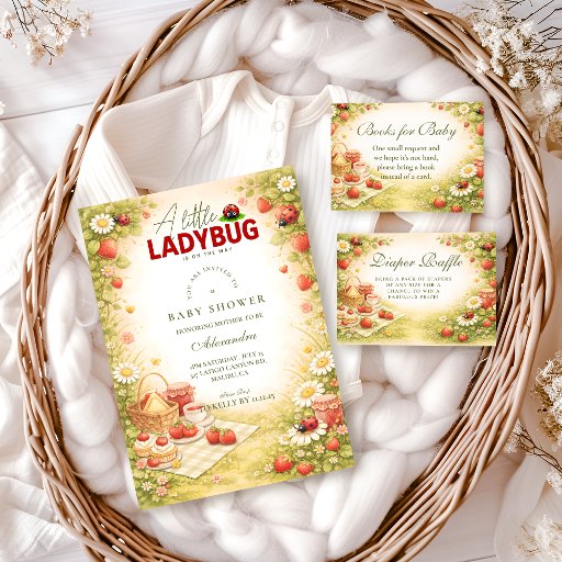 Celebrate a sweet new arrival with this charming storybook-style ladybug garden design. Soft daisies, leafy vines, and bright red ladybugs create a whimsical nature scene that feels warm, joyful, and timeless. The open center keeps the layout elegant and easy to personalize, making it perfect for spring and summer celebrations inspired by nature, gardens, and classic childhood charm.