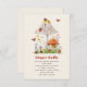 La página de un libro de cuentos sobre la naturaleza inspiró la invitación a la ducha de bebé con el ilustracion de dos setas rodeadas de ladybugs y flores silvestres.