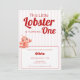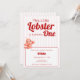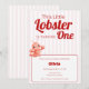 A playful coastal-inspired lobster birthday invitation for a first birthday celebration, featuring soft stripes and a cheerful lobster illustration.