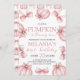Celebrate your little one’s special day with this sweet “Little Pumpkin is Turning One” birthday invitation! Featuring watercolor pink pumpkins, soft satin bows, and elegant script, this design is perfect for a fall or autumn first birthday. Ideal for pumpkin patch parties, rustic chic celebrations, or seasonal baby birthdays.