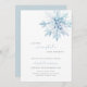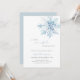 Celebra la llegada de tu bebé con esta elegante invitación a la ducha de bebé con temática invernal. Con un delicado copo de nieve de color agua en tonos azules helados, este encantador diseño captura perfectamente la esencia de un maravilloso paisaje invernal. Los suaves tonos azul pastel y la refinada tipografía le dan un toque sereno y festivo a su día especial. Personaliza los detalles para que sea únicamente tuyo e invita a amigos y familiares a compartir la alegría de la próxima llegada de tu pequeño. Ideal para las duchas de invierno para bebés, esta invitación es una hermosa manera de recibir tu paquete de alegría.