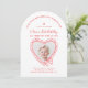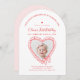 Celebrate your little one’s first birthday with this coquette-inspired heart invitation, featuring delicate pink bows, sweet hand-drawn details, and a romantic Valentine-style design.