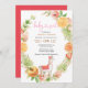 Llama Mama Citrus Floral Greenery Baby Shower Invitation - Celebra la próxima llegada de tu preciosa bebé con esta adorable y linda "Invitación Baby Shower" con una feliz mamá de llama rodeada de vegetación y follaje naranja, rosa y rojo. El título incluye caligrafía rosa. El fondo presenta un patrón naranja brillante. Todos los textos están predispuestos para que puedas personalizarlos fácil y rápidamente con los detalles de tu ducha de bebé.