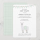 Simple y con clase, esta llama neutral linda del género verde y grisáceo con la invitación de Baby Shower de la bandera del triángulo es la de manera perfecta de hacer revelar de un género y el fiesta de fiesta de bienvenida al bebé al mismo tiempo. Funciona increíble para los pares que quieren guardar el género de su bebé pronto-a-ser-nacido hasta la fecha de llegada. La manta en la llama tiene un sistema de pies del bebé en ella y la parte posterior de la tarjeta tiene lunares.