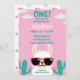Invitación Llama primer Fiesta verde rosado de cumpleaños