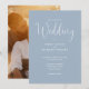 Esta invitación de boda de letra elegante azul polvoriento puede ser personalizada con toda la información de su boda y una foto especial en el reverso. Diseñado por Thisisnotme