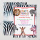 Haga del cumpleaños de su hijo una aventura salvaje con esta colorida invitación de "Llamar a todos los animales Fiestas" que incluye una divertida mezcla de animales de la selva incluyendo un león, cebra, jirafa e hipopótamo. Con letras de arcoíris audaces y un borde de safari lúdico, este diseño es perfecto para los niños que aman a los animales y los emocionantes fiestas. Personaliza con tus detalles de celebración y prepárate para un buen momento.