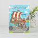 Celebra el cumpleaños de tu pequeño niño vikingo con esta colorida invitación. Cuenta con un niño guerrero vikingo con casco con cuernos, escudo de madera y hacha. Él y algunos de sus amigos de la tripulación del barco están posando frente a un barco vikingo largo. En la parte posterior, hay un paisaje escandinavo y una casa con techo de paja vikingo decorada con una calavera y cabezas de dragón. En la parte delantera, hay un letrero que dice FIESTA, la mascota lobo del niño y globos amarillos. Es ideal para una fiesta de cumpleaños con tema vikingo. Esta invitación de cumpleaños para niños se personaliza fácilmente para su evento agregando sus datos.