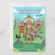 Celebra el cumpleaños de tu pequeño niño vikingo con esta colorida invitación. Cuenta con un niño guerrero vikingo con casco con cuernos, escudo de madera y hacha. Él y algunos de sus amigos de la tripulación del barco están posando frente a una casa vikinga. Al fondo, hay un paisaje escandinavo y una casa con techo de paja vikingo decorada con una calavera y cabezas de dragón. En la parte delantera, hay un letrero que dice FIESTA, el lobo mascota del niño y globos amarillos. Es ideal para una fiesta de cumpleaños con tema vikingo. Esta invitación de cumpleaños para niño se personaliza fácilmente para tu evento añadiendo tus datos.