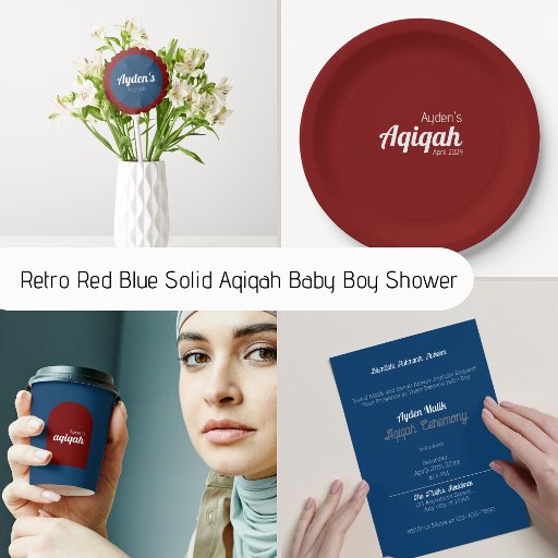 Retro Red Blue Solid Aqiqah Baby Boy ShowerDiseñado por Presti Dina