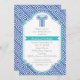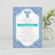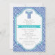 Patrón de clave griega y azul, columna acuática Invitación a la ducha de boda griego con un marco con contorno azul y acuático, un borde de la llave griega o patrón de malandro o frito griego en azul y blanco, un cartel turquesa y una columna azul acuática griega. Texto en gris. Este diseño elegante y moderno, con elementos antiguos y antiguos, es perfecto para una temática griega o griega boda, independientemente del lugar en el que tenga lugar en Grecia o en cualquier otro lugar.