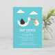 Celebre la nueva llegada con estilo con estas adorables invitaciones a la ducha de cigüeñas. Cada una incluye una cigüeña que da a luz a un bebé. © Mood 4 Cute